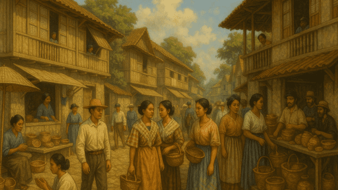 Urban and rural rhythms. Town life revolved around the plaza complex—church, municipal hall, school — ringed by houses of the principalia. In the countryside, tenancy and sharecropping structured livelihoods; festivals, fiestas, and religious confraternities knit communities.